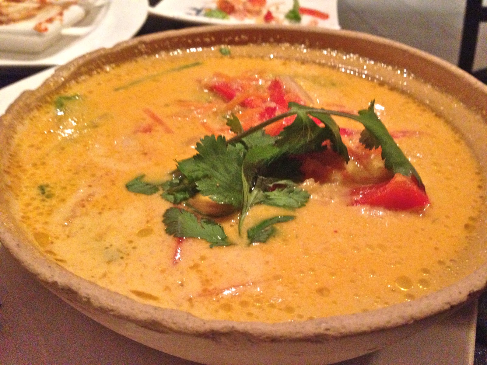 The traditional, filled with “prawn,” grilled pork, mint, cucumbers and chives was mediocre. Definitely not one to blow your socks off with an explosion of flavors, I’d pass on selecting it again.